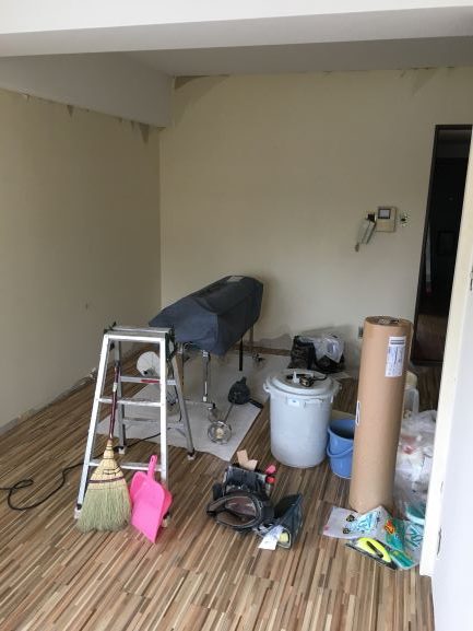 一方で原状回復は既にクロスが張られており、既存のクロスをはがせるだけはがした状態で